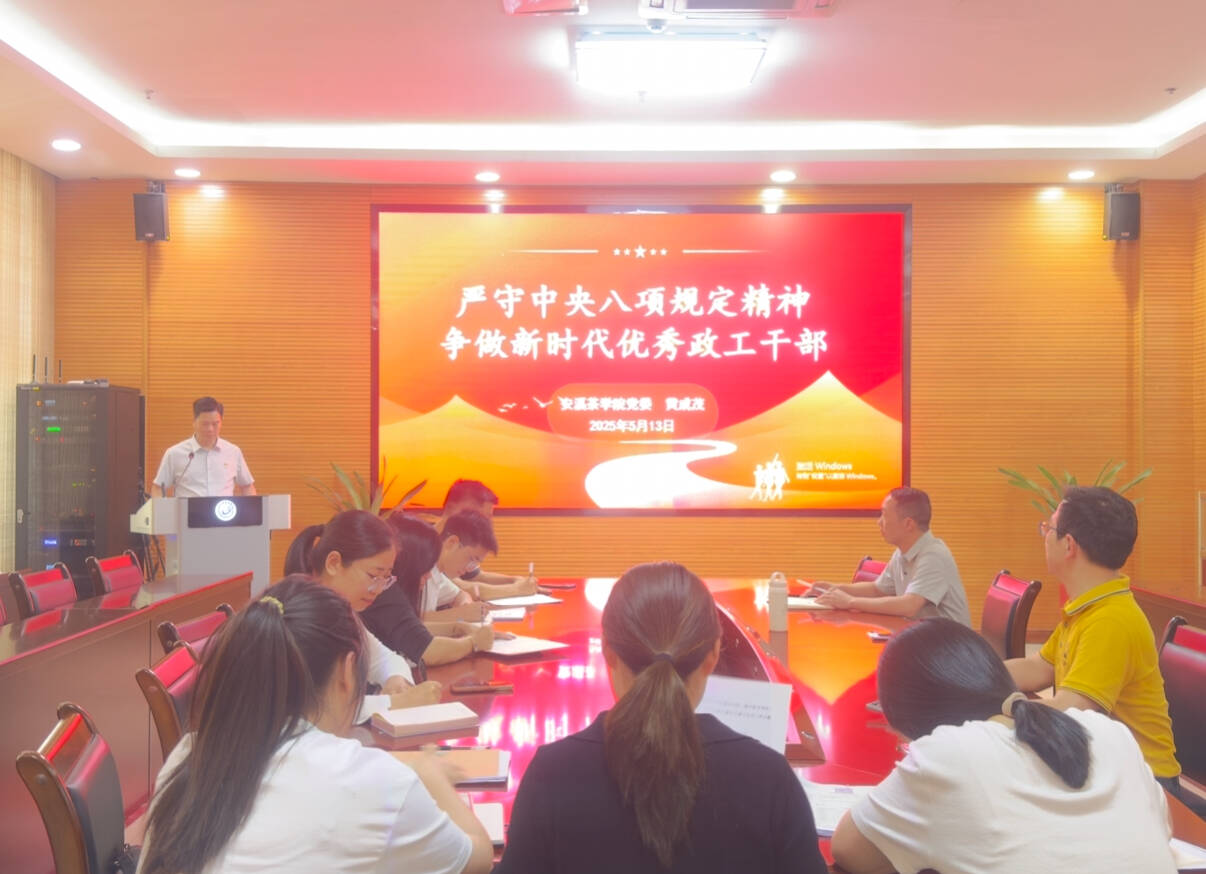 为深入贯彻中央八项规定精神学习教育工作,强化新时代高校思想政治工作队伍建设,5月13日,数字经济学院(安溪茶学院)党委书记黄成茂应邀为学院全体政工干部讲授专题党课,主题为“严守中央八项规定精神 争做新时代优秀政工干部”。学院党委副书记、团委书记及全体政工干部参加。