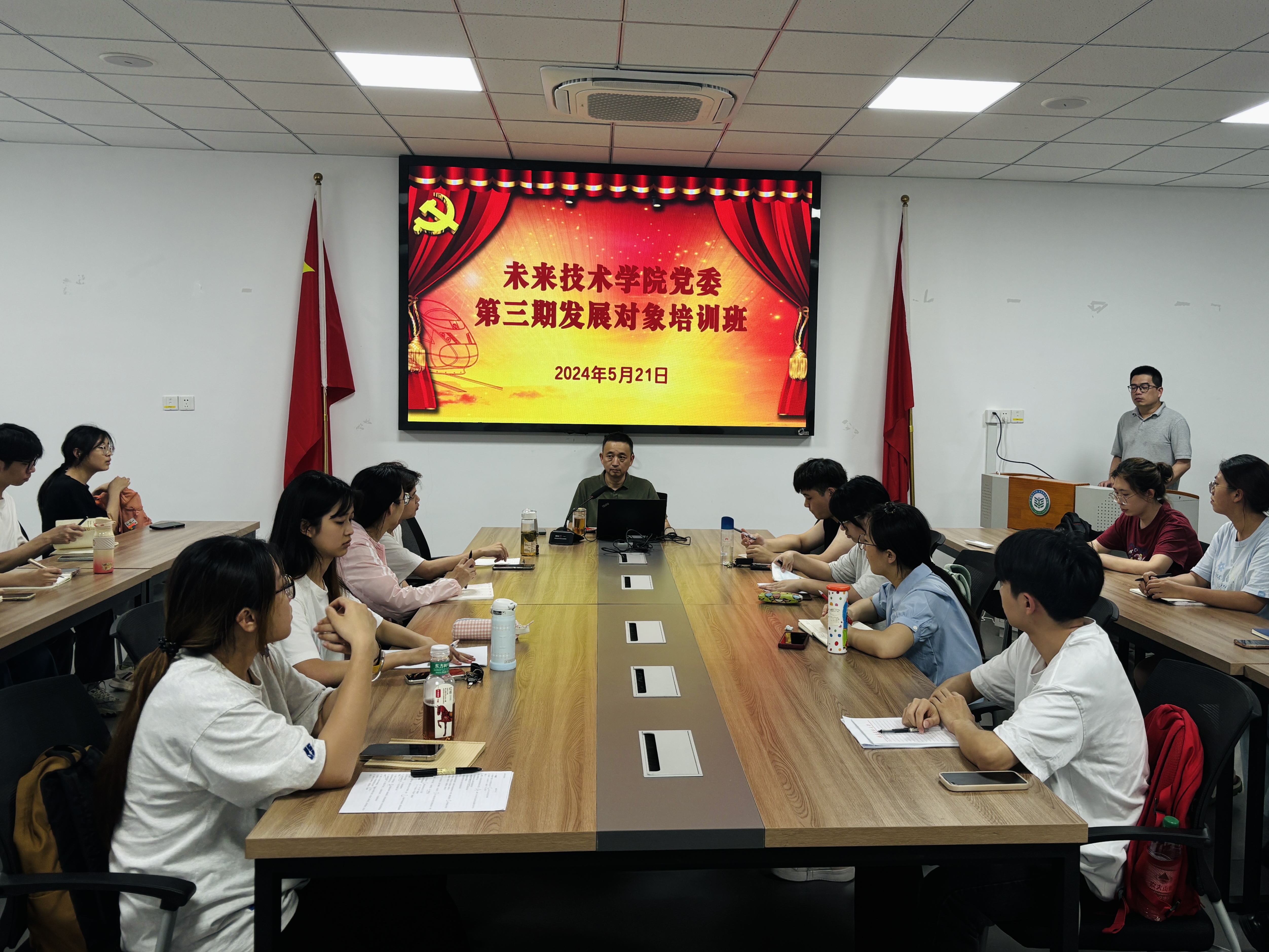 为切实强化发展对象的党性修养,进一步提升对习近平新时代中国特色社会主义思想和党的基础理论的认识,端正入党动机、坚定理想信念,未来技术学院分党校于 5月 21日至 25日举办第三期发展对象培训班。本次培训由学院党委领导班子成员、马克思主义学院教师共同授课,为全体学员带来了内容丰富、形式多样的系列专题党课。