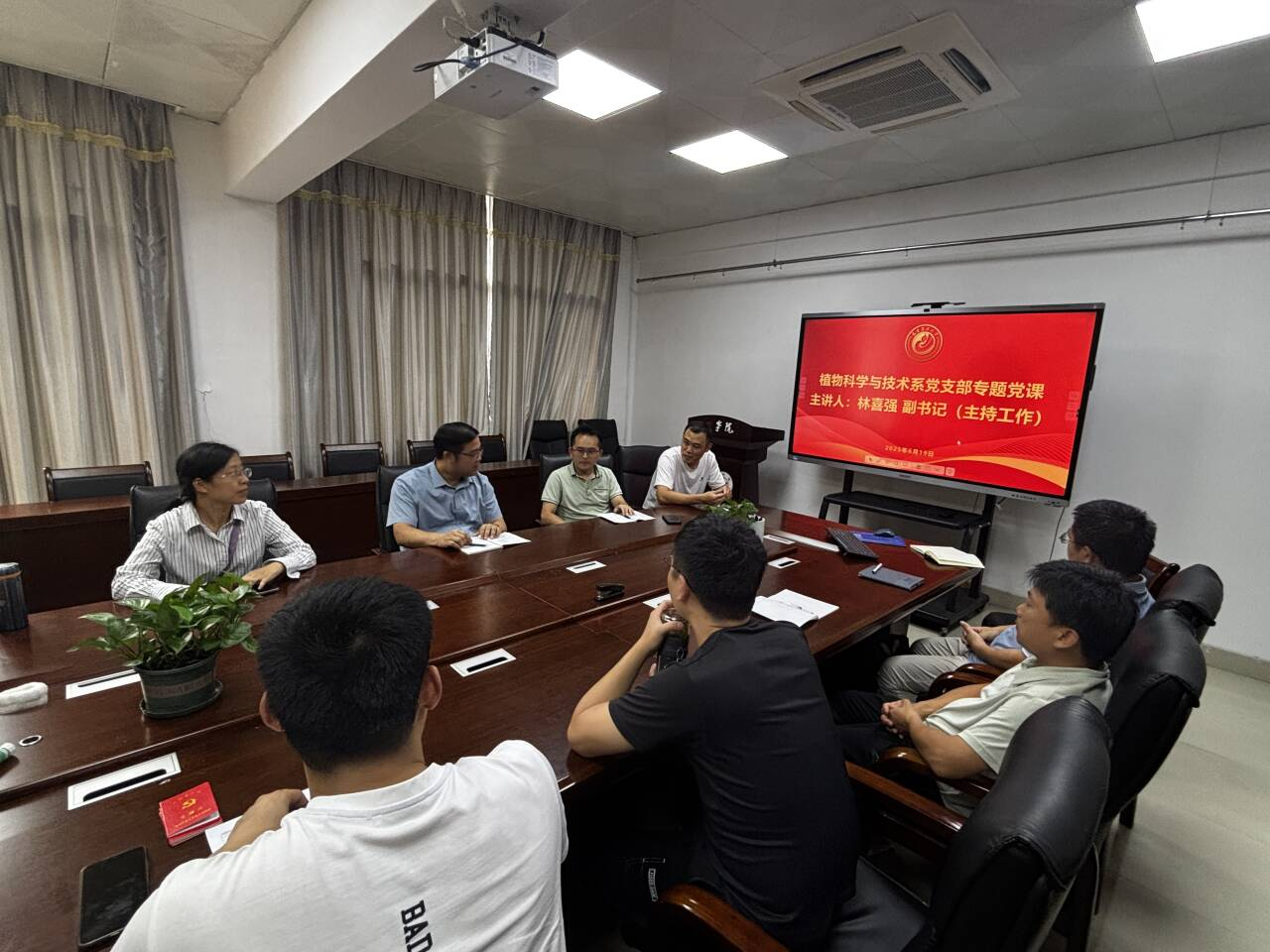 6月19日下午,农学院党委副书记(主持工作)林喜强以“深入贯彻中央八项规定精神,以优良作风推动农学院高质量发展”为题,为植物科学与技术系教工党支部党员讲授专题党课。
