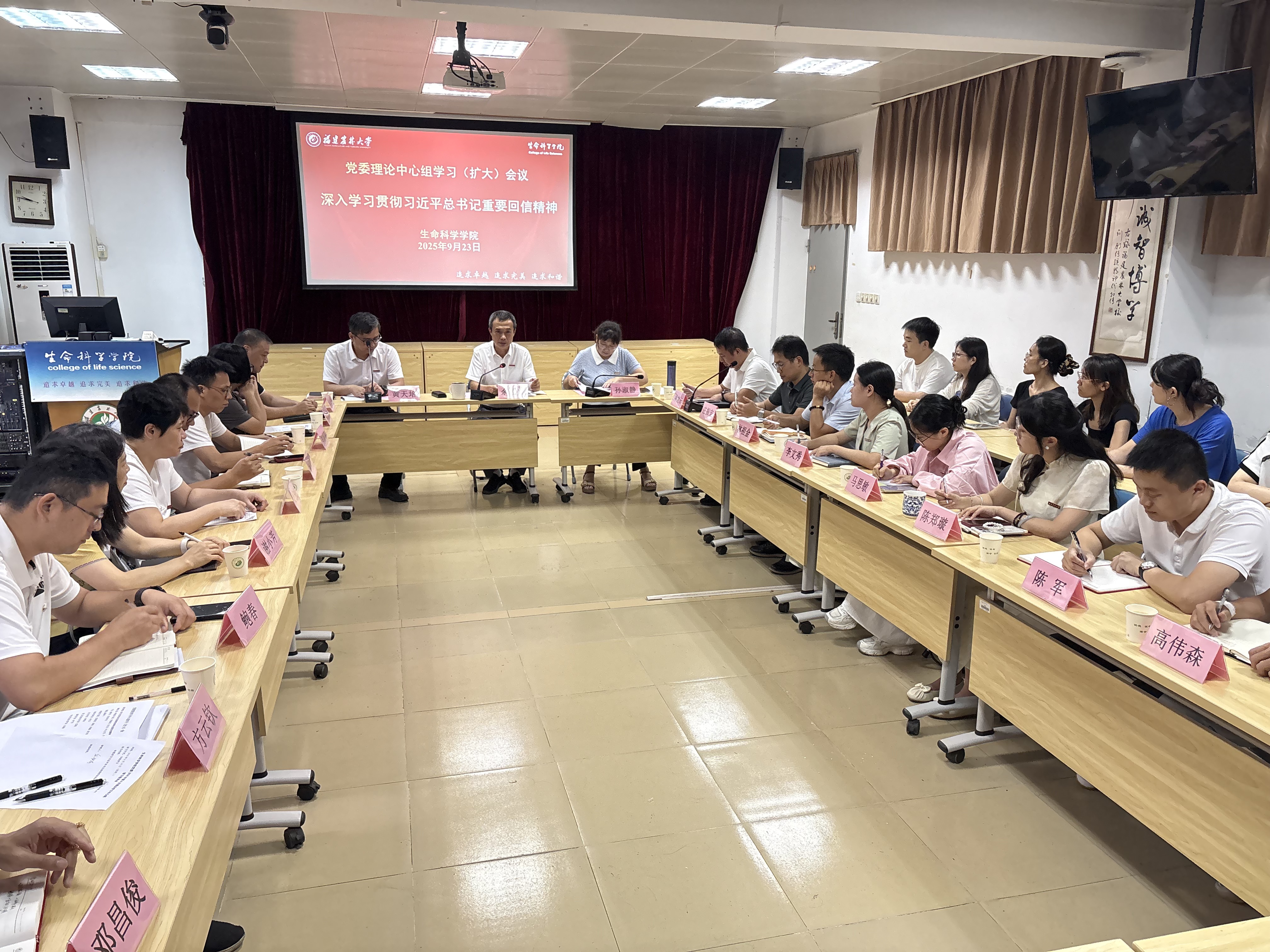 9月23日下午,生命科学学院党委召开理论学习中心组学习(扩大)会议,专题学习研讨习近平总书记给williamhill英国官网全体师生的重要回信。会议由学院党委书记余顺兴主持会议,院党委理论学习中心组成员、科级干部、系主任、高层次人才代表、政工干部、各党支部书记和学生代表参加。
