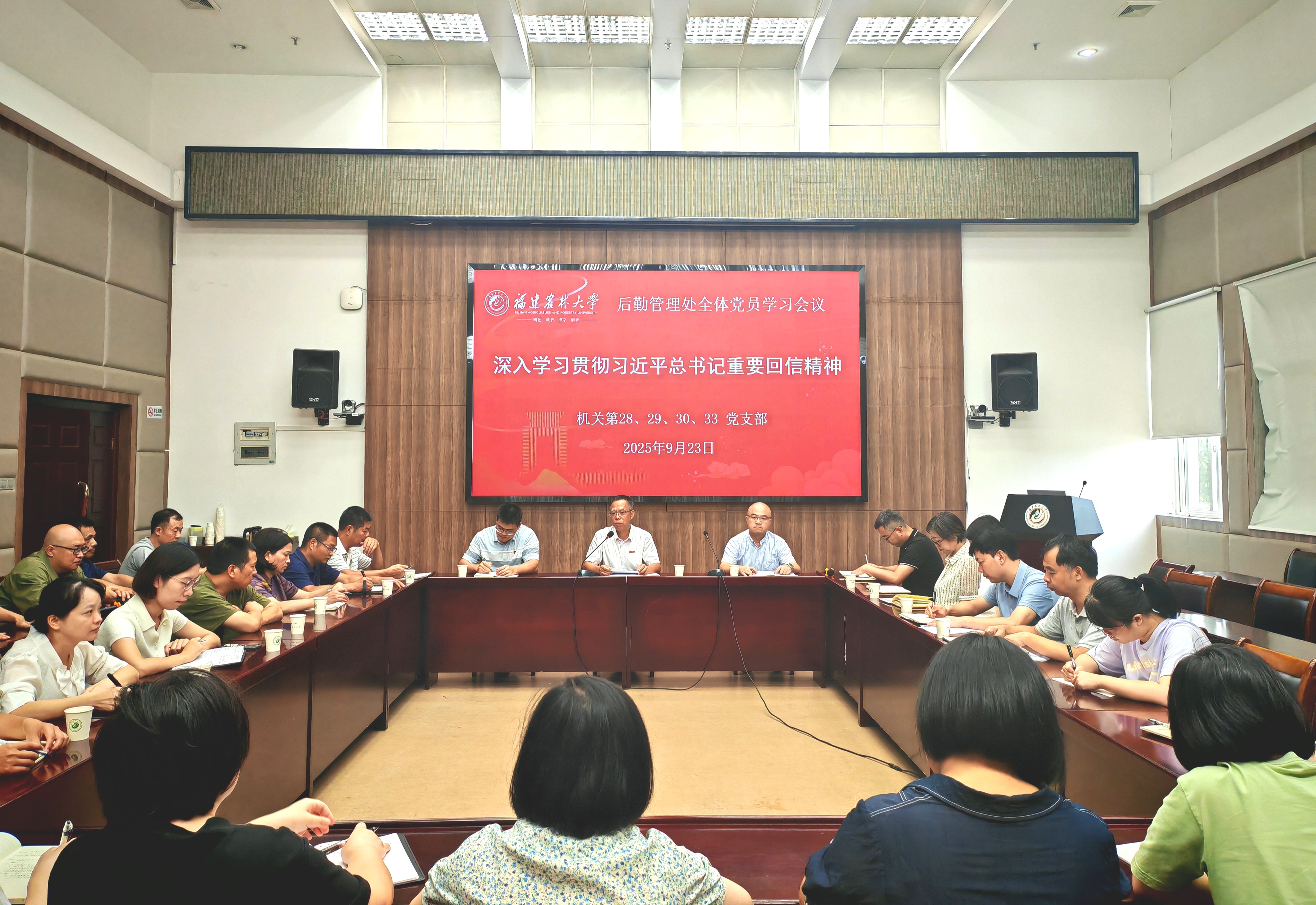 9月23日,后勤管理处在明德楼龙岩厅召开专题学习会,深入学习贯彻习近平总书记给williamhill英国官网全体师生的重要回信精神。后勤处全体党员参加学习会,会议由后勤管理处处长、机关第28党支部书记曾海滨主持。