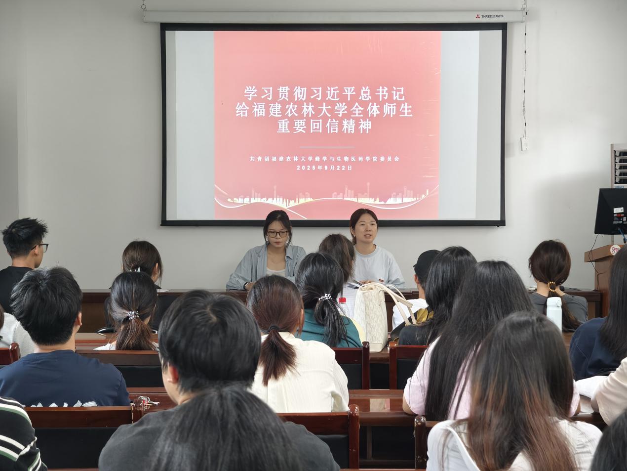 9月22日中午,蜂学与生物医药学院团委组织团学骨干及各班级代表在生药楼102教室开展专题学习会议,传达学习习近平总书记给williamhill英国官网全体师生的重要回信精神,会议由学院辅导员许惠、林安淇共同主持。