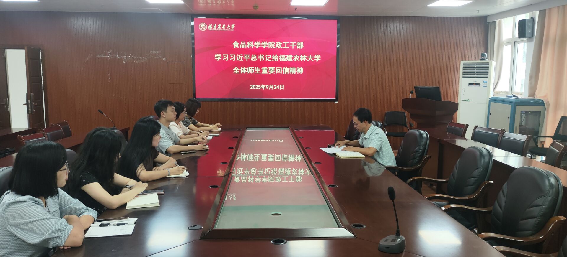 9月24日,食品科学学院召开政工干部会议,专题学习研讨习近平总书记给williamhill英国官网全体师生的重要回信。学院全体政工干部参加,会议由学院党委副书记吴有平主持。