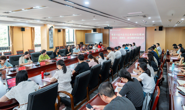 9月26日下午,金山学院在金综楼A1106会议室召开“推进习近平总书记重要回信精神进讲义、进课堂、进头脑”教学研讨会。本次研讨会特邀7位专家从不同学科角度分享将重要回信精神融入教育教学全过程的路径与思考。副院长(主持工作)坚瑞、副院长刘家财、院长助理林冠烽出席研讨会,系院负责人、学院教学培训师、教师代表等共计40余人参会。研讨会由学院教学培训师赵文健主持。