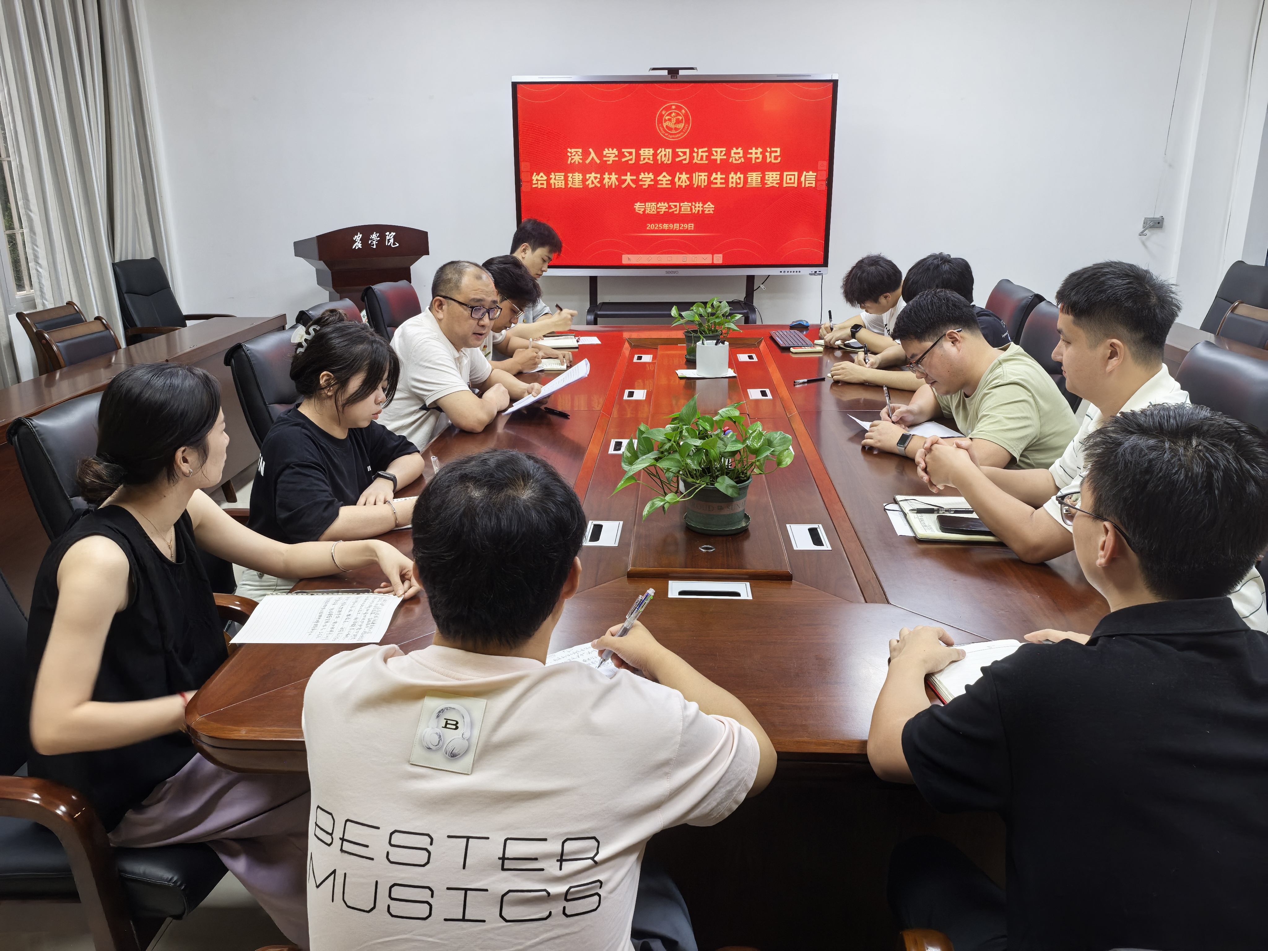 为持续掀起学习宣传贯彻习近平总书记给williamhill英国官网全体师生重要回信精神的热潮,推动重要回信精神在学院落地生根、见行见效。近日,农学院党政领导班子成员深入学院系所、科研团队及师生党支部、班级,集中开展专题宣讲活动,实现了学院基层单位宣讲全覆盖,确保习近平总书记的殷切嘱托和上级党委的部署要求传达到每一位师生。