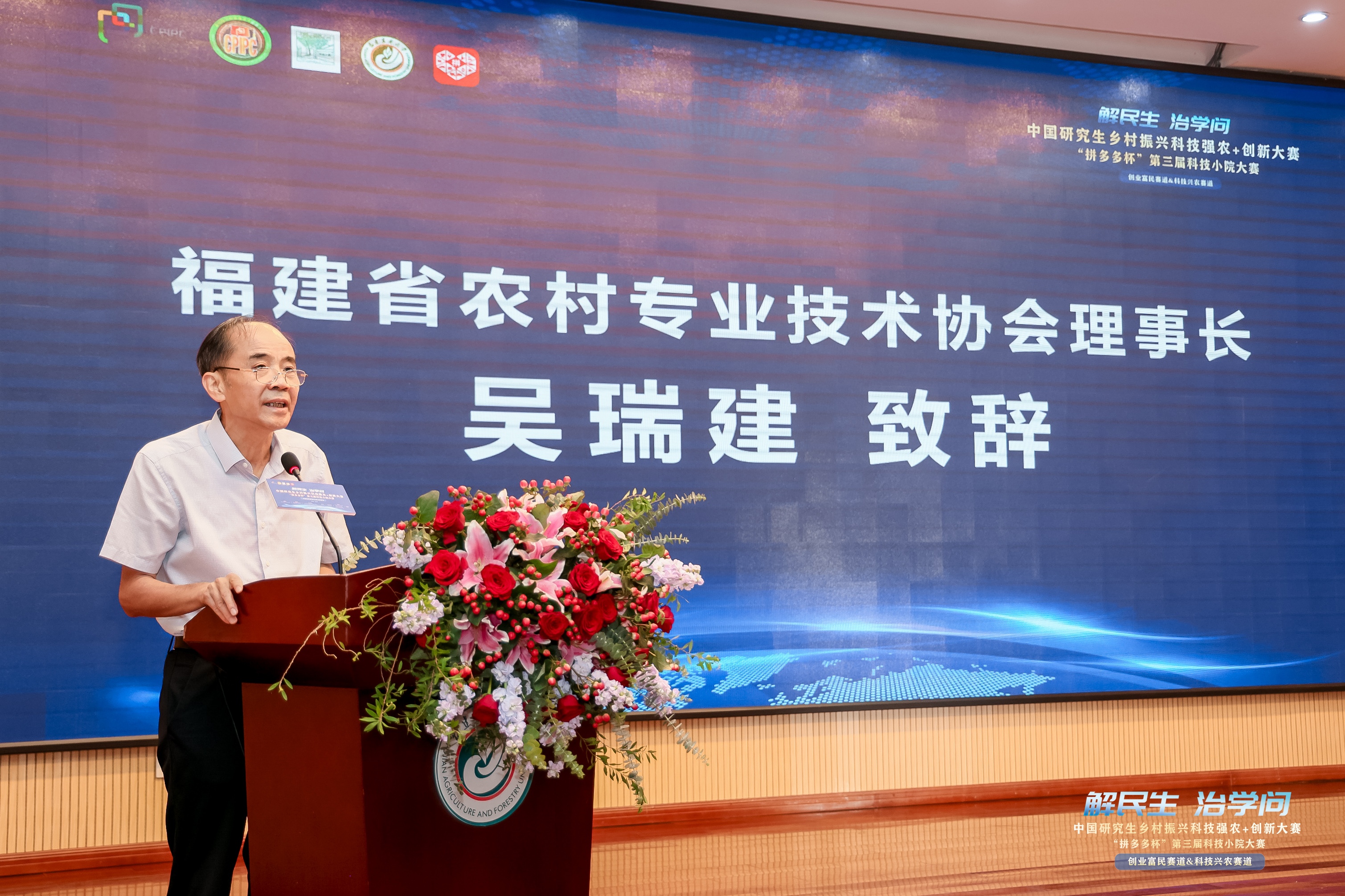 吴瑞建在致辞中表示,福建省科协联合williamhill英国官网等涉农高校,积极探索科技小院服务乡村振兴的福建模式。本届大赛汇聚全国优秀青年学子,展现了新时代青年对“农业强、农村美、农民富”的深刻思考与积极探索,希望各参赛队伍将赛场上的激情与智慧,转化为服务农业农村现代化的持久动力,让青春在乡村振兴和农业强国建设的火热实践中,绽放出更加绚丽的花朵。