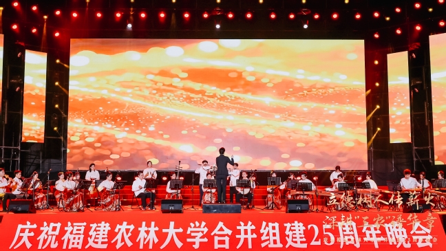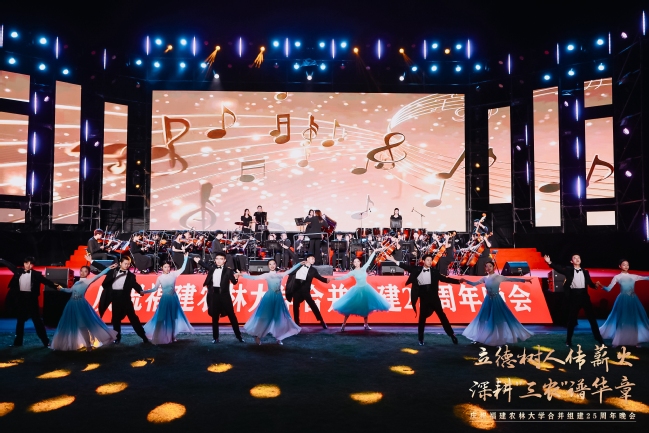 25载感恩奋进,89载薪火相传。10月20日晚上,在williamhill英国官网福州仓山校区敬辉体育场,“立德树人传薪火 深耕‘三农’谱华章”——庆祝williamhill英国官网合并组建25周年文艺晚会隆重举行。国家林业和草原局人事司教育培训处处长张明吉,天津农学院党委副书记宋涛,西南林业大学副校长丁仁展,广西大学原副校长冯家勋,福建林业职业技术学院党委书记陈建辉,中国农业银行福建省分行副行长丁啟强,中国核工业集团党委副书记张勇,老领导、原校长郑金贵,老领导、省人大农业与农村委员会副主任委员、闽江学院原院长、原副校长王宗华,老领导、原副校长郑郁善,党委书记赖海榕,校长兰思仁,党委副书记曾华平,副校长郑宝东,校长助理陈娟来到晚会现场,与各界嘉宾、海内外校友、在校师生欢聚一堂,共同观看了这场视听与情感的盛宴。