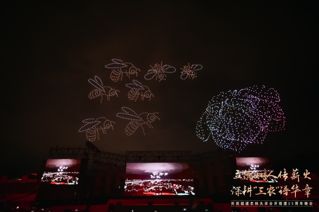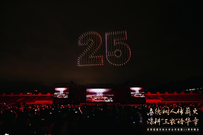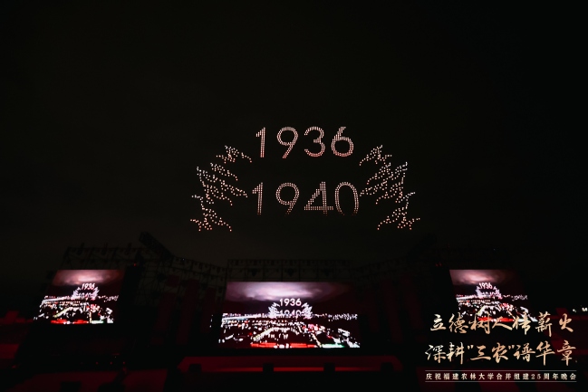 震撼的无人机表演引起现场观众的共鸣,1000架无人机以夜空为幕,依次绘就了学校1936年与1940年的办学起点、2000年合并组建的历史时刻、熠熠生辉的校徽与校训、立体的“25”周年标识、学习贯彻重要回信精神等12幅光影画卷,表达了学习贯彻习近平总书记重要回信精神的决心和对学校明天更美好的真挚祝福。