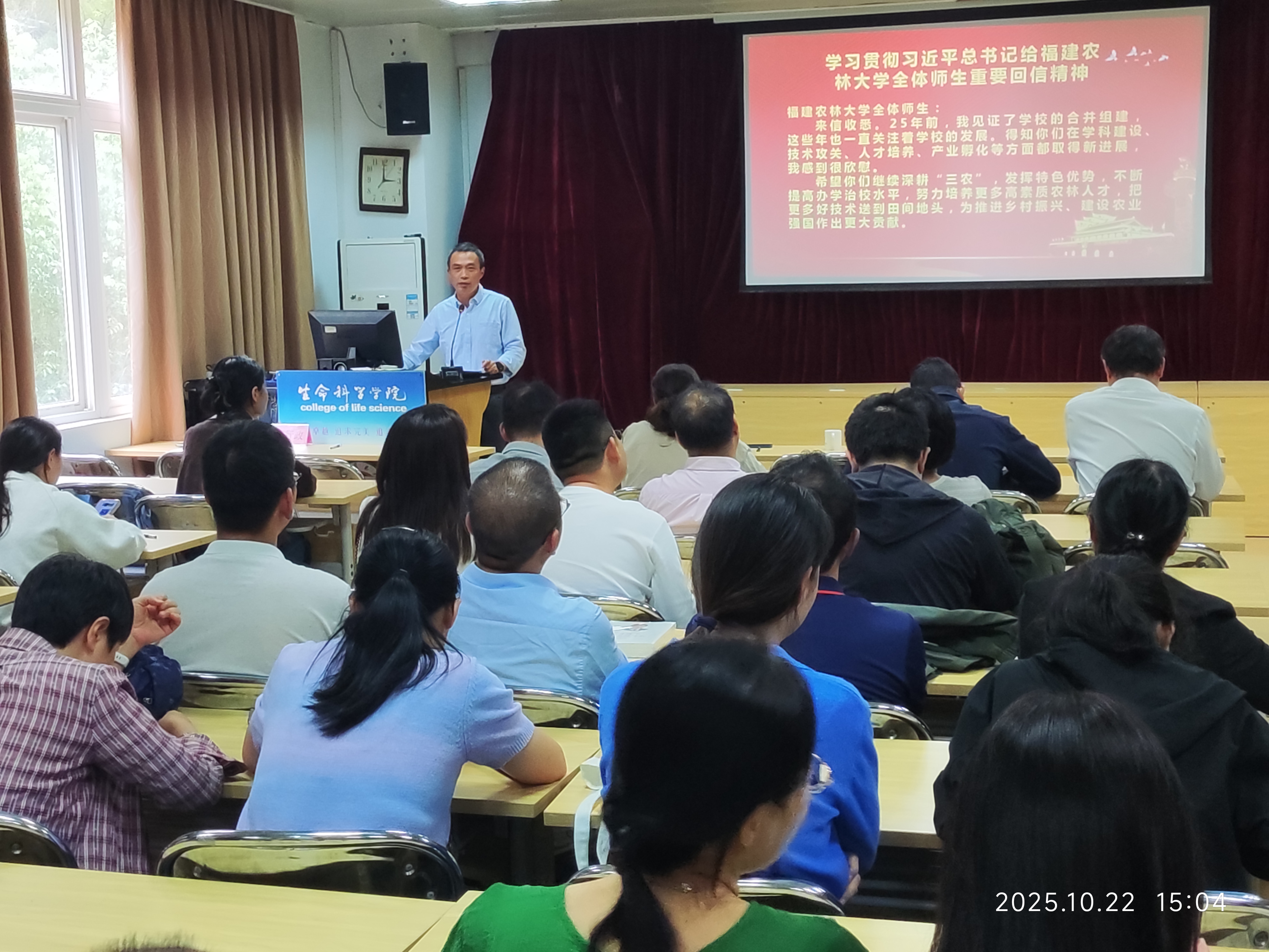 10月22日下午,生命科学学院在生科楼414召开新学期教职工大会,学院全体教职工参加,会议由院党委副书记刘强主持。