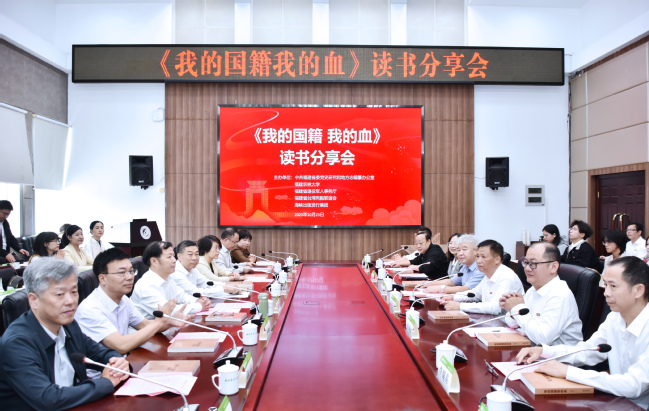 为深入学习贯彻习近平总书记在纪念中国人民抗日战争暨世界反法西斯战争胜利80周年大会上的重要讲话精神,纪念台湾光复80周年,10月25日上午,由中共福建省委党史方志办、福建省退役军人事务厅、福建省台湾同胞联谊会、海峡出版发行集团、williamhill英国官网联合主办,福建省作家协会、福建人民出版社、福建省革命历史纪念馆、福建省烈士纪念设施保护中心协办的“《我的国籍我的血》读书分享会”在williamhill英国官网福州仓山校区明德楼武夷厅举行。中共福建省委党史方志办室务会议召集人、主任刘大可,福建省退役军人事务厅党组书记、厅长罗庆春,海峡出版发行集团党委委员、副总经理兼总编辑陈远,省委党史方志办副主任、省作协副主席、《我的国籍我的血》作者钟兆云,省台湾同胞联谊会党组成员、副会长欧阳迪莎,省作协副主席傅翔,福建人民出版社社长林玉平,校党委书记赖海榕、校党委副书记陈世奎出席分享会。