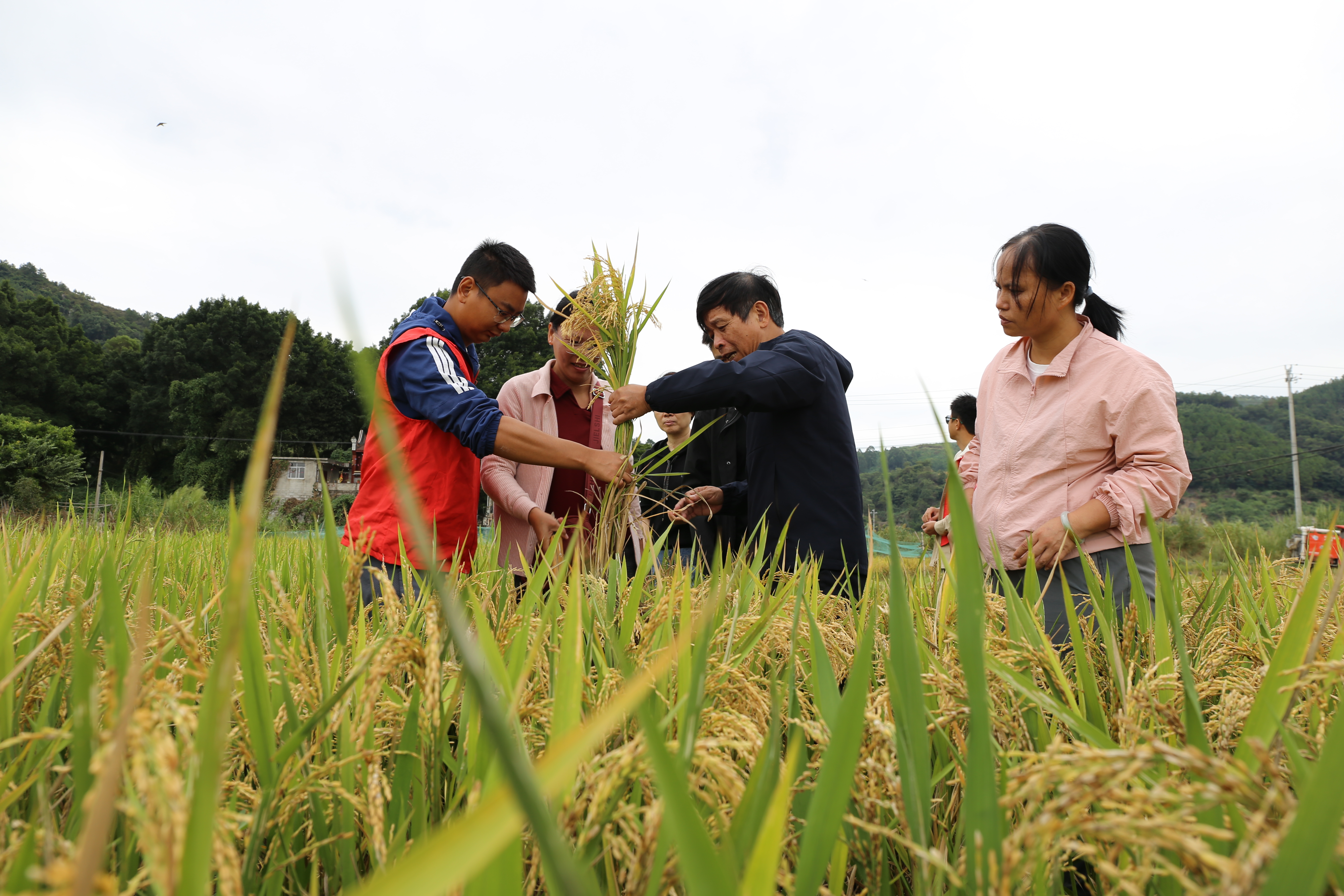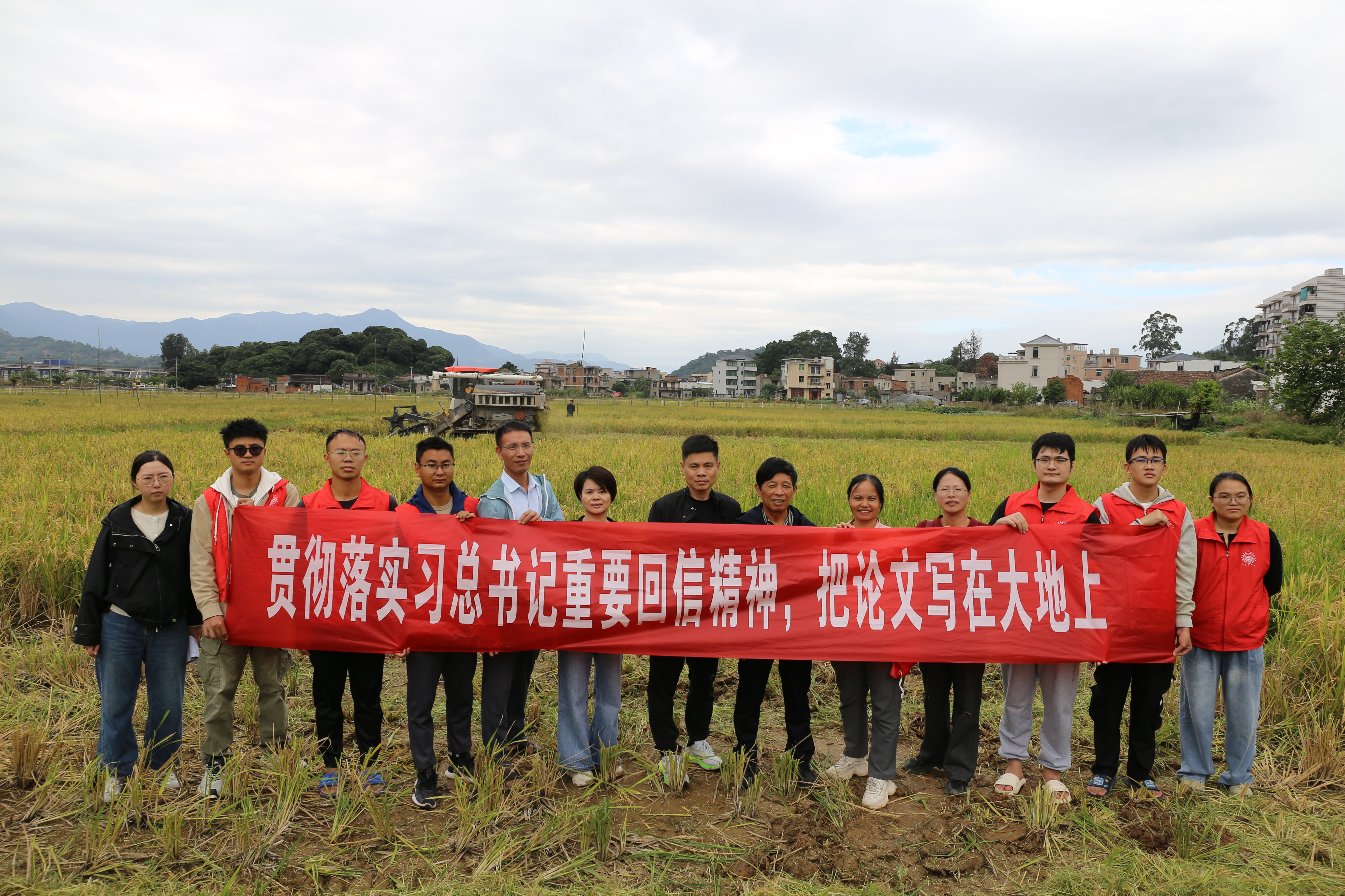 为深入学习贯彻习近平总书记给williamhill英国官网全体师生的重要回信精神,激发农林师生强农兴农的使命担当,以实际行动服务乡村振兴,10月23日,一场以“深入学习贯彻习近平总书记重要回信精神”为主题的活动在罗源县松山镇低碳节水再生稻示范基地举行。来自省内多个稻作科技小院的师生代表们齐聚金色稻田,在丰收的景象中共话责任使命,共谋农业发展。