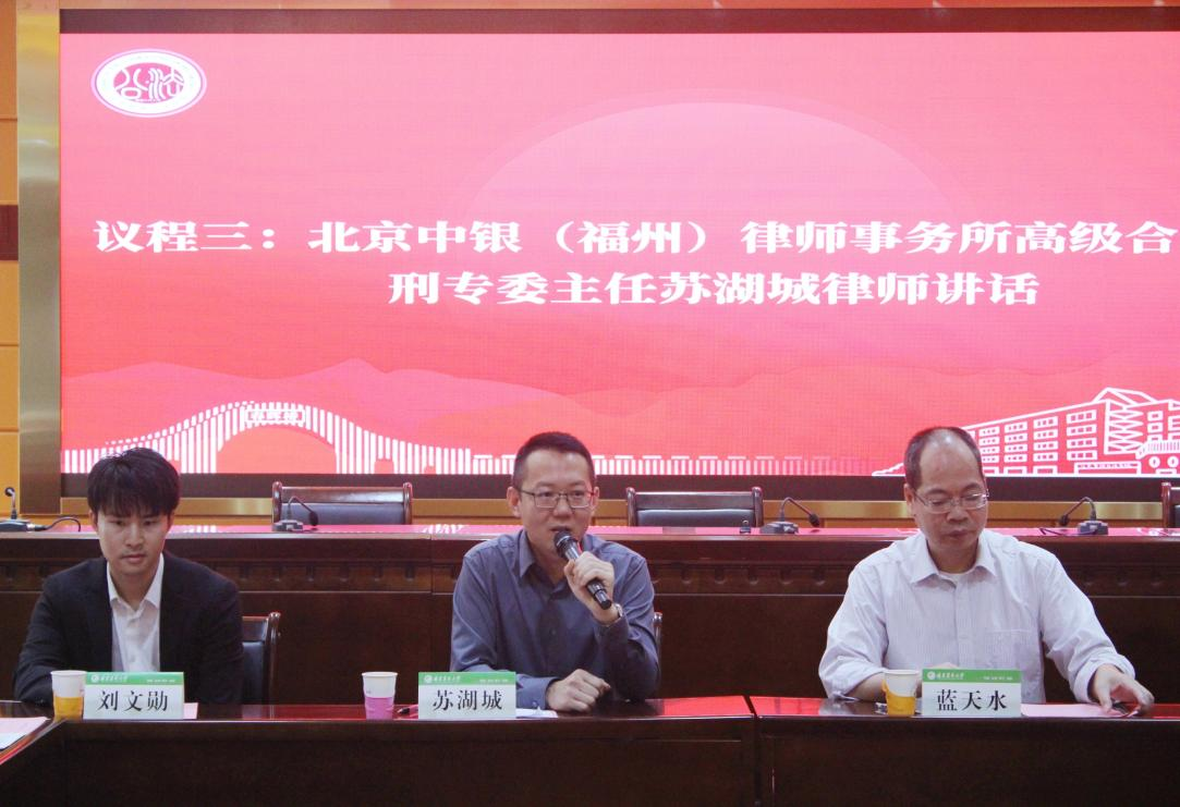 冬意渐浓,暖意满怀。11月1日,“中银律师”奖助学金颁发仪式在公共管理与法学院三楼会议室举行。北京中银(福州)律师事务所高级合伙人、刑事专业委员会主任苏湖城律师,刘文勋律师,学院党委书记蓝天水,法学系主任陈文兴、法学系教学秘书汤凌燕及师生代表齐聚现场,共同见证这份凝聚着法治情怀与教育温度的爱心传递。