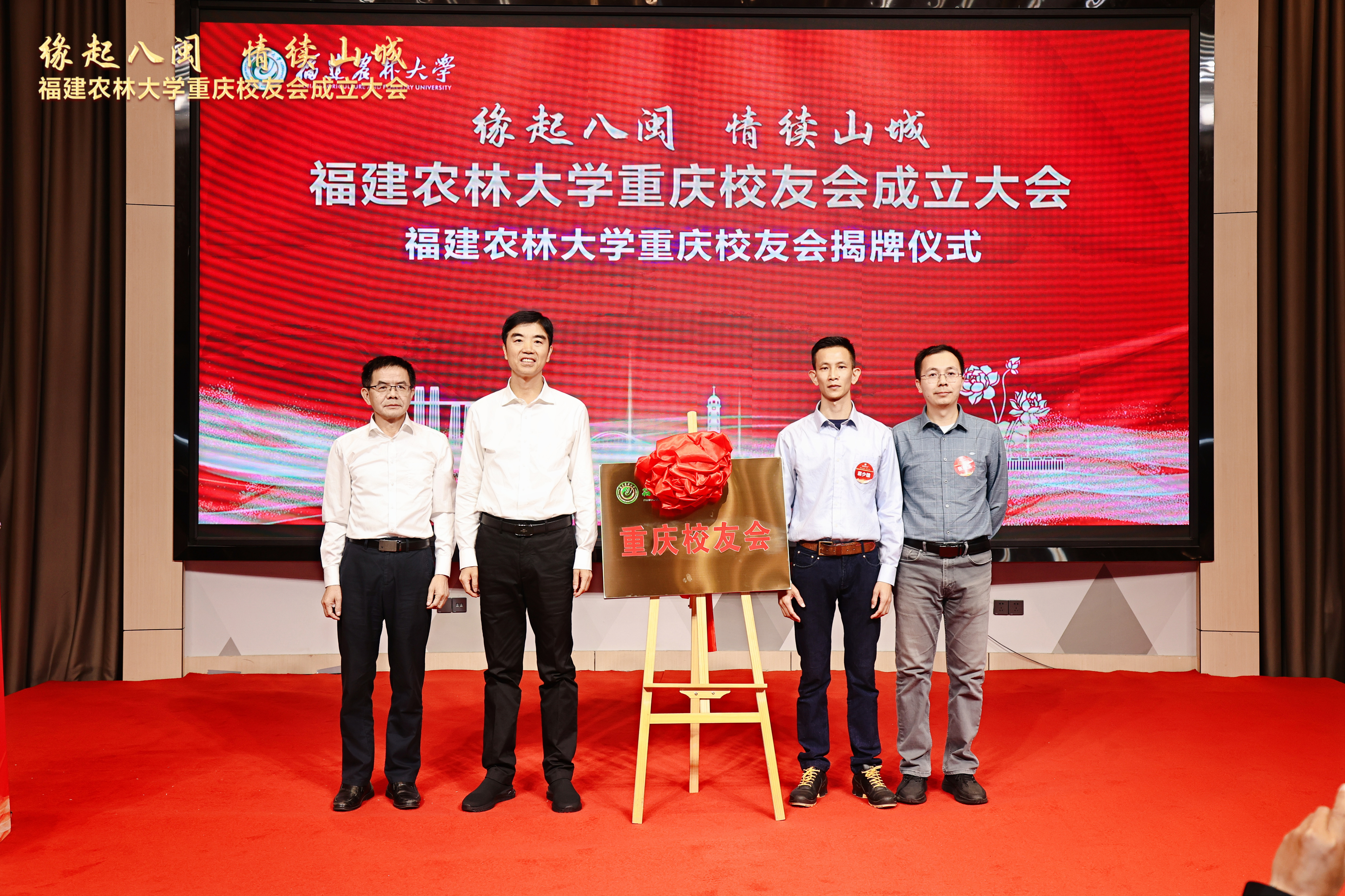 林庆藩、雷国铨代表学校分别向重庆校友会授旗、校友会骨干成员授牌,并为重庆校友之家揭牌。