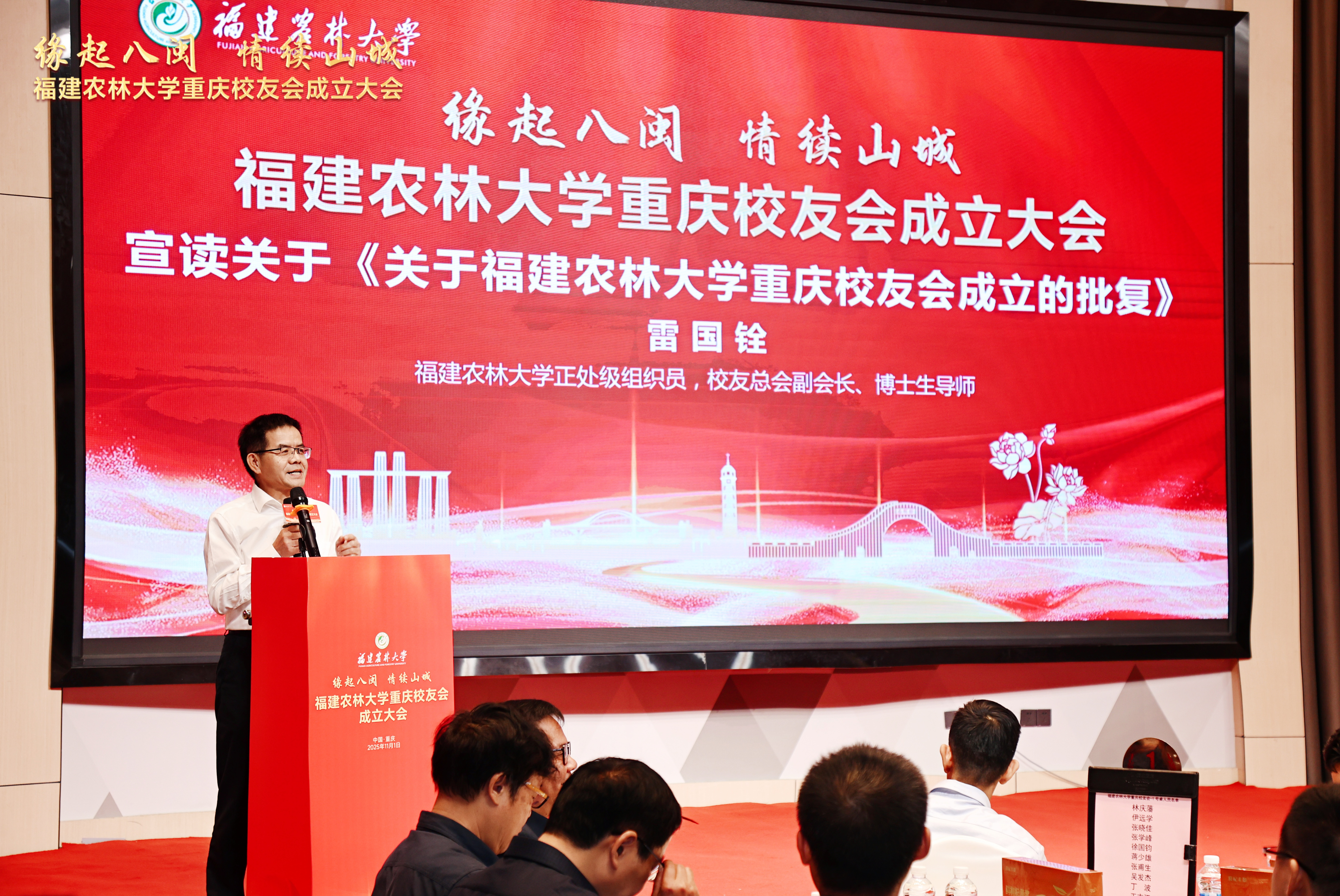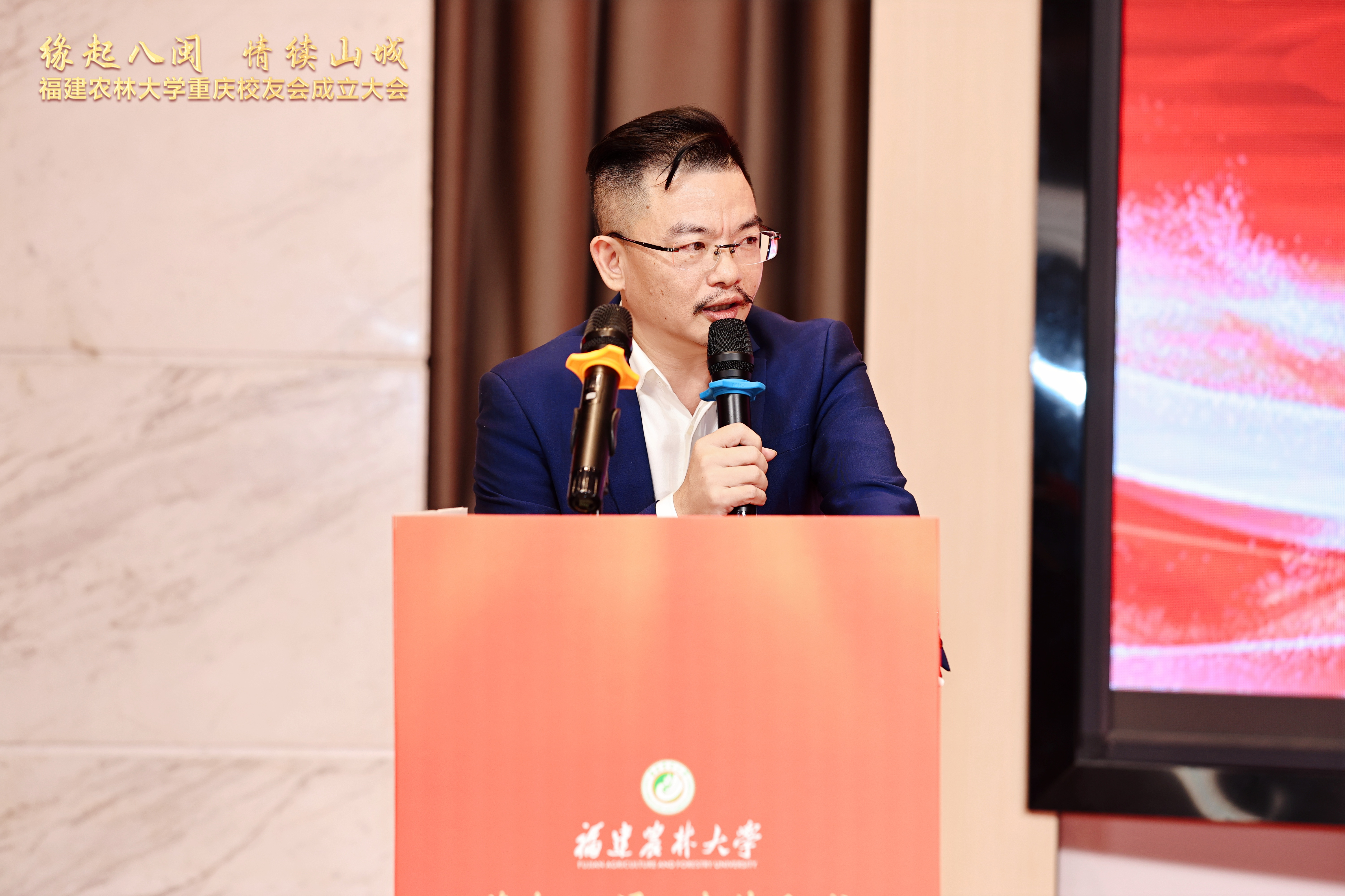 林庆藩代表学校向大会成立致以最热烈的祝贺,并转达了校党委书记赖海榕、校长兰思仁对在渝校友的亲切问候和诚挚祝福。他详细向在场校友们传达了习近平总书记给williamhill英国官网全体师生的重要回信精神,深情回顾了williamhill英国官网的办学历程,介绍了学校近年来所取得的成就、各校区兴办情况及争创国家“双一流”高校建设情况,他还特别感谢长期关心支持母校发展的校友、参与筹建重庆校友会的骨干成员以及助力重庆校友会筹建的兄弟院校校友会和地方商会。他表示,重庆校友会的成立,标志着学校在西南地区的校友工作开启了新的篇章,为在渝校友搭建了一个联络感情、分享资讯、互助合作、共同发展的优质平台,他期待重庆校友会能够成为凝聚校友力量的“强磁场”、助力校友成长的“加油站”及联结渝闽、服务社会的“彩虹桥”,共同推动母校和重庆地区的繁荣发展。他向广大校友发出深情邀约,欢迎校友们常回“家”看看,期待与校友们相聚在明年九十周年校庆。