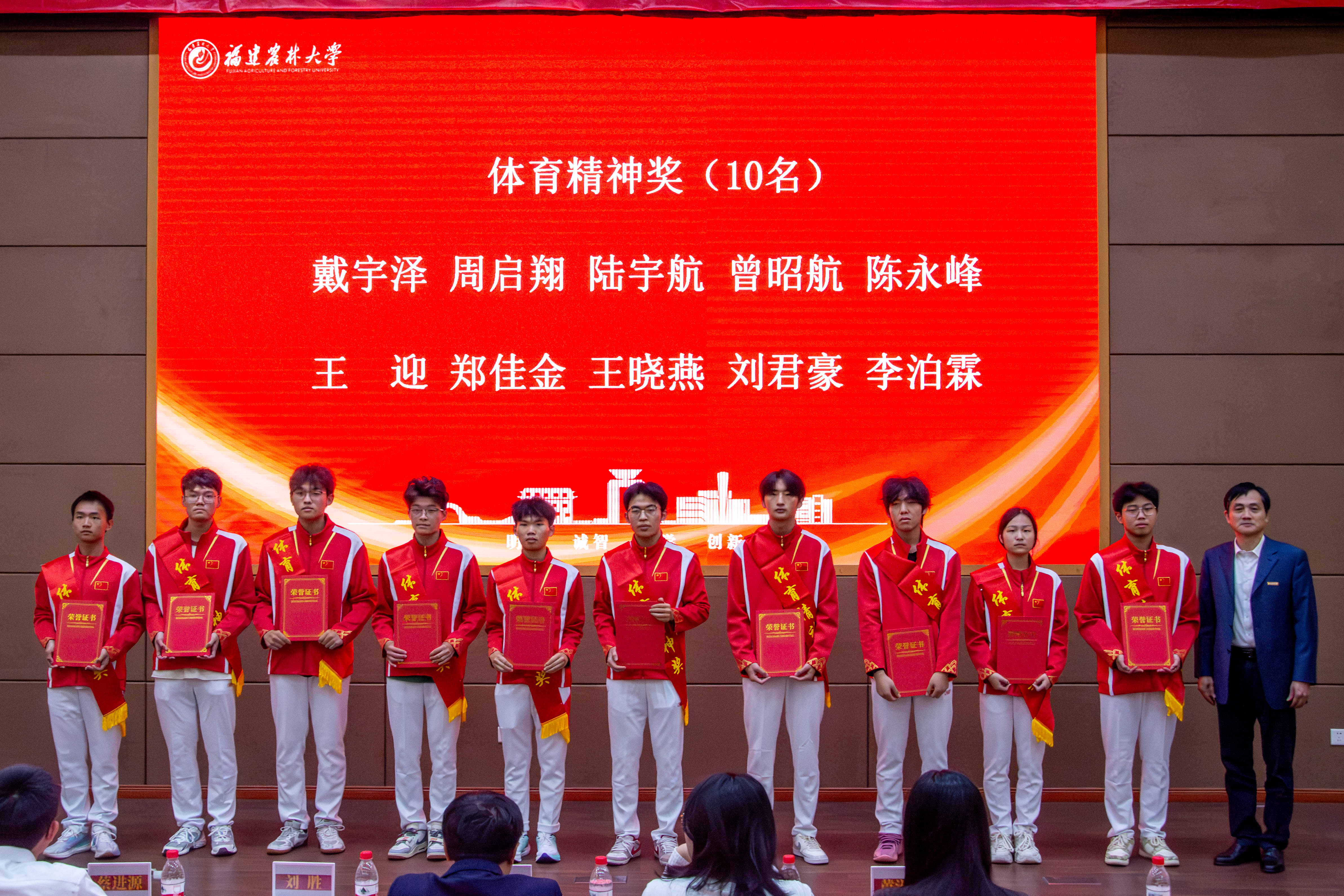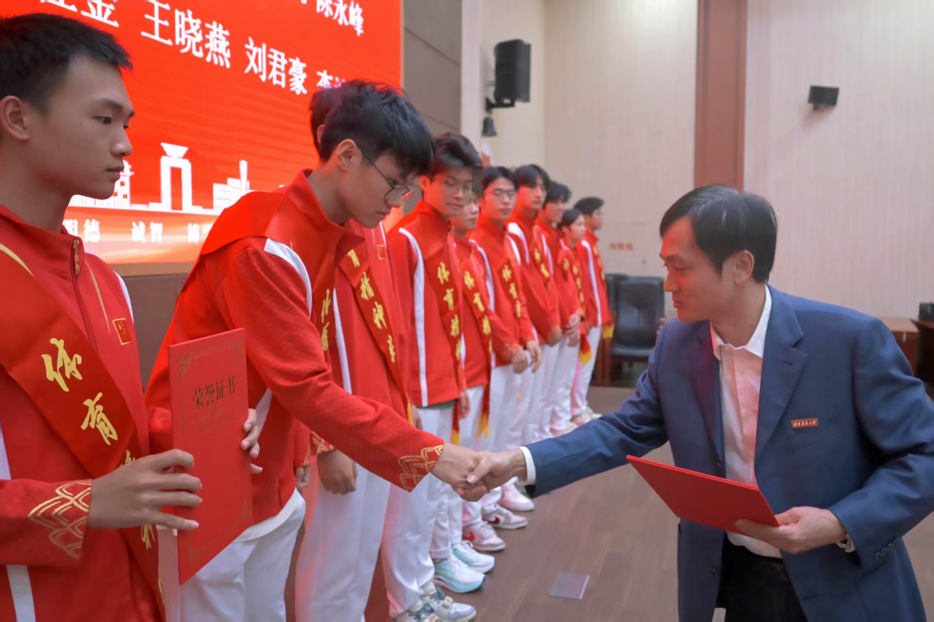 会上,郑书河宣读了机电工程学院2025年体育工作表彰决定,授予黄晴晴等20人“优秀运动员”荣誉称号,授予廖嘉乐等20人“体育先进工作者”荣誉称号,授予戴宇泽等10人“体育精神奖”荣誉称号,授予2024人工智能3班等6个班级“集体组织奖”荣誉称号。与会领导向受表彰对象颁发绶带和证书。