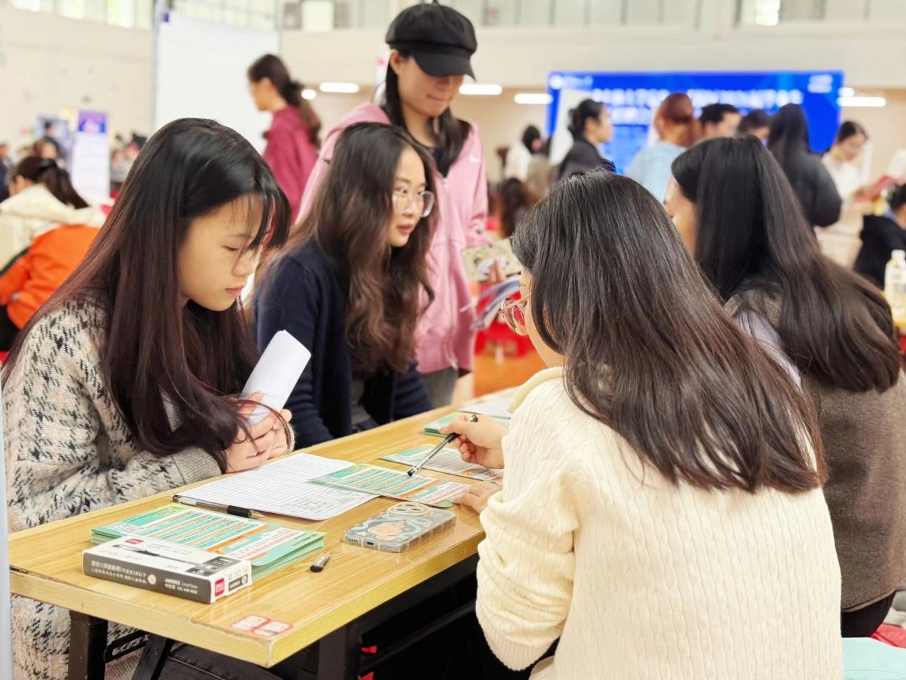 招聘会共有52家企业参与,共提供就业岗位675个,现场1000多名学生怀揣着对未来的憧憬奔赴这场“双向奔赴”的职业之约。参会企业涵盖了新式茶饮、农林科技、智能制造、电商物流、文创教育、金融服务等多个热门领域,既有行业龙头企业、上市公司,也有成长型中小企业与本地重点扶持企业,岗位类型覆盖技术研发、质量控制、运营管理、市场推广、财务会计等多个方向,充分满足了不同专业毕业生的求职需求。