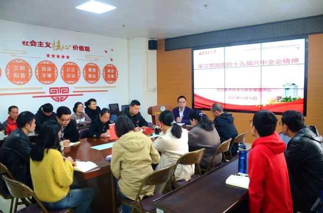 11月15日,图书馆党委第四支部(现代教育技术与信息管理中心)召开专题会议,学习贯彻党的十九届六中全会精神,会议由副主任曾海滨主持,中心全体人员参加。