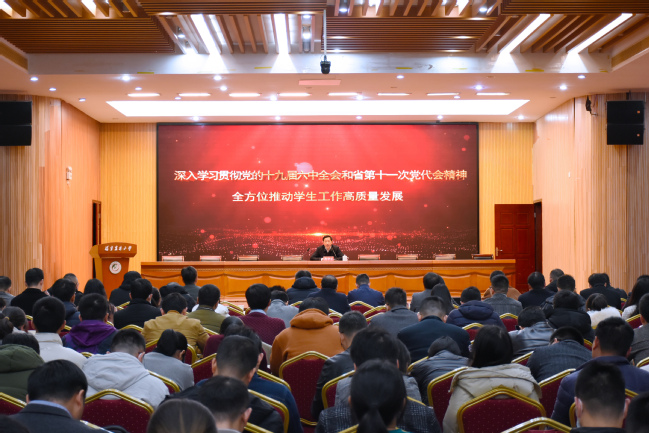 1月10日,校党委常委、校党委副书记曾华平为学工系统师生作题为《深入学习贯彻党的十九届六中全会和省第十一次党代会精神,全方位推动学生工作高质量发展》的宣讲报告。曾华平指出,党的十九届六中全会是一次内涵深刻、意义深远的重要会议,要深刻理解和准确把握全会决议的重要意义,深刻理解和准确把握党的百年奋斗的初心使命,深刻理解和准确把握党的百年奋斗的重大成就,深刻理解和准确把握“两个确立”的政治成果,深刻理解和准确把握以史为鉴、开创未来的根本要求。曾华平强调,当前和今后一段时间,学工系统要坚持对标对表,按照校党委提出的“八个务必”要求,以学习宣传贯彻党的十九届六中全会和省第十一次党代会精神为主线,着力加强大学生理想信念教育,着力发挥学生党建在思想政治教育中的引领作用,着力突出各项管理服务工作的思政内涵和育人属性,凝心聚力、乘势而上、开拓前行,扎实服务williamhill英国官网“双一流”建设,培育担当民族复兴大任的时代新人。