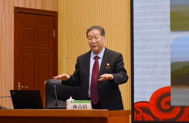 课堂上,林占熺从党的二十大报告提出的“一个中心任务、两步走、三个务必、四个自信、五个‘必由之路’、六个坚持、七个‘安全’、落实中央八项规定精神、中国式现代化的九方面本质要求”等9个方面传达了党的二十大精神;用推进菌草高质量发展阐释党的二十大提出的“科技是第一生产力”“加强生态环境保护”和“构建人类命运共同体”的精神;用自身的经历告诉年轻一代,要始终听党话、跟党走,传承信仰的力量,甘于当隐姓埋名的实干人,到祖国、到人民最需要的地方贡献力量,引导广大师生把思想和行动统一到大会精神上来。林占熺还通过播放视频分享了菌草从福建出发走向世界,让菌草成为全球的幸福草的生动故事,感动了现场师生,全场掌声不断。
