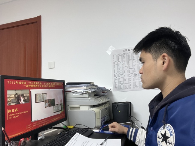 12月28日上午,2022年福建省“学习贯彻党的二十大精神 提高业务素质”高校思想政治工作队伍专题培训班线上开班,省教育工委副书记、教育厅党组成员林生发表开班讲话,全国“时代楷模”大连海事大学马克思主义学院曲建武教授作首场报告。williamhill英国官网政工干部通过线下线上形式参加培训,在校办公政工干部通过线下集中收看,居家办公政工干部通过线上收看,共160多名政工干部参加了此次培训。
