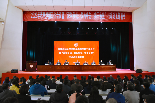 王建南指出,今年是全面贯彻落实党的二十大精神的开局之年,是实施“十四五”规划承上启下的关键之年,更是学校开启新一轮“双一流”高校建设新征程的起步之年。全校上下要提高政治站位,深化思想认识,把实施“深学争优、敢为争先、实干争效”行动作为贯穿全年工作的重要抓手,把自己摆进去、把职责摆进去、把工作摆进去,以拼的姿态、抢的劲头、争的行动,全方位推进学校高质量发展。一要深学争优,强化理论武装,在坚持用习近平新时代中国特色社会主义思想铸魂育人中争当“优等生”。要学出坚定信仰,感悟思想伟力,学好习近平新时代中国特色社会主义思想,学好习近平总书记关于教育的重要论述,学好习近平总书记对福建工作的重要讲话重要指示批示精神,学好习近平总书记在福建工作期间开创的重要理念和重大实践以及关心指导williamhill英国官网建设发展的重要论述,学好党中央决策部署和省委工作要求。要学出本领素养,提升政治能力,坚持读原著、学原文、悟原理,坚持好、运用好贯穿其中的立场观点方法。要学出使命担当,增强实践动力,准确领悟党中央和省委的战略意图,将各项部署要求落细落实到学校发展各领域各方面。二要敢为争先,强化勇当先锋,在推进党建和思政工作守正创新中争当“先行者”。要抓谋划、开新路,站位要高、谋事要实,敢于在重点、难点、堵点上求突破,善于在创造性贯彻落实上开新路。要抓特色、立项目,对标对表校党委“八大工程”部署要求,将党建与思政工作落实到看得见、摸得着、做得到的具体项目中。要抓创建、树品牌,坚持以项目带动抓创建,以品牌带动扩影响。要抓总结、出经验,善于挖掘、提炼和宣传先进的人和事,形成可复制可推广的工作经验,加大向上向外宣传推送力度。要抓联动、促联创,围绕学生、关照学生、服务学生,不断提升学生思想水平、政治觉悟、道德品质和综合素养。要抓一线、守底线,深入开展“辅导员面对面”集中教育活动,持续推动党政干部、辅导员、班主任等思政力量下沉一线,深化“一站式”学生社区综合管理模式内涵建设。要抓少数、带多数,发挥“关键少数”作用,示范引领,构筑师生员工团结奋斗的“同心圆”。要抓制度、建机制,建立科学合理、奖罚分明的考评测评体系,激励争先进位。三要实干争效,强化务求实效,在建设农林特色鲜明的全国一流大学中争当“实干家”。加快建设一流学科,大力实施学科分层建设计划、一流学科培优计划和“博点扩容”计划。加快培养一流人才,完善面向未来的学科专业体系,创新知农爱农人才培养新模式。加快汇聚一流师资,实施新时代“百人攀登计划”、“百人引进计划”,全方位培养引进用好人才。加快产出一流成果,强化有组织的科研,高质量推进创新平台建设,以高层次创新团队、重大项目攻关、重大成果培育为牵引,全面增强学校科技创新能力。加快推进一流治理,持续深化新时代教育评价改革,深化学校内部治理改革。四要迅速调整到位,进入工作模式,扎实推进新学期工作开好局起好步。精准开展教育引导活动,针对开学季不同时期学生的困惑和需求,分阶段、分步骤提供有针对性、实效性的工作举措。及时掌握学生思想和心理动态,针对共性问题,加强教育引导,针对个性问题,实现精准引导。丰富活跃校园文化氛围,组织开展富有特色的文化体验活动和实践活动,提升校园文化在学生中的感召力和影响力。持续优化校园服务管理,建立发现问题、分析问题、研究问题、解决问题的有效机制,及时回应师生诉求。科学谋划开学以后的重点工作,认真研制本部门本单位今年工作重点、要点,着力推动各项工作提质增效。学校将把实施“深学争优、敢为争先、实干争效”纳入各级领导班子和领导干部考核的重要内容,营造比学赶帮超、争先奋进的浓厚氛围,全力推进学校高质量发展,为谱写中国式现代化福建篇章作出应有的贡献。